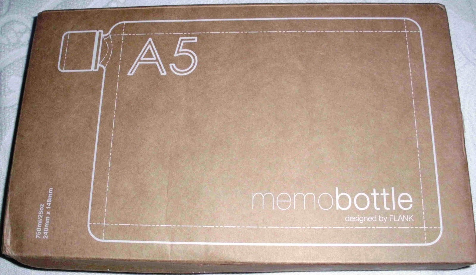 Falo da Memobottle, uma garrafa de água reutilizável sem BPA com capacidade de 750 ml e com a forma de um bloco de notas de tamanho A5. Foi criada a pensar no seu transporte em malas.